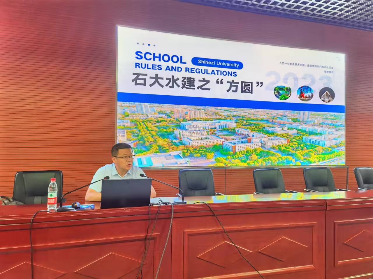 看球通 党委副书记娄哲以“石大水建之‘方圆’”为主题,结合身边典型案例向工科学子们生动讲述了大学生活、学习的注意事项,明确了在校生不可逾越的“红线”和“底线”,帮助新生牢固树立安全风险防范意识。