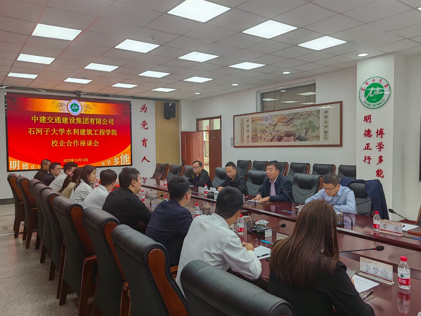 10月12日,中建交通建设集团有限公司招聘总监孟子舒携集团下属8家分公司招聘经理应邀来看球通体育 座谈交流并开展招聘宣讲。看球通 党委书记汤骅、党委副书记娄哲、副院长袁康,相关科室负责人参会,会议由汤骅主持。