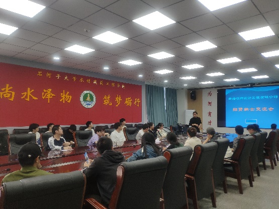 4月9日下午,贵州省水利水电勘测设计研究院有限公司人力资源部部长张春乾等一行7人来看球通体育 开展座谈交流。看球通 党委副书记娄哲,看球通 团委书记张丽君,校友会秘书长谢嵘,毕业生辅导员刘娟、周鑫参加座谈会。会议由谢嵘主持。
