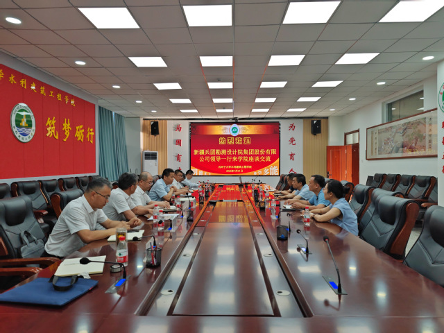 7月31日,新疆兵团勘测设计院集团股份有限公司党委副书记、总经理宋剑鹏,副总经理蔡宝柱,总承包公司党委书记张文刚,总承包公司总经理宋贤贺,一分院党委书记高宗昌,一分院院长李学红等一行来看球通体育 座谈交流。石河子大学党委常委、副校长叶含春,看球通 党委副书记、院长王振华,副院长陈伏龙,看球通 党委委员、水利水电工程系主任金瑾教授(挂职八师水利局副局长)等参加座谈。