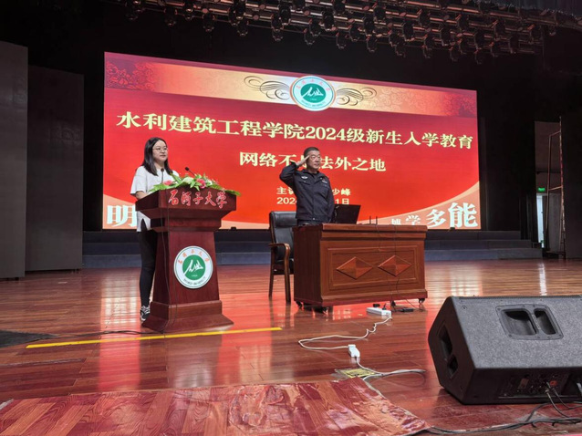 9月11日,看球通 与法看球通 在北区会堂联合组织开展首场2024级新生入学教育活动,特别邀请到东明新村派出所李少锋所长以“网络不是法外之地”为主题做宣讲,李少锋结合真实案例与理论知识,从网络安全讲到国家安全,从个人信息保护延伸到保守国家秘密,提醒警示同学们务必做好“七防”,树立底线思维,自觉谨言慎行,强化自我行为管理,从思想上给自己扣好大学生活的"第一粒扣子"。