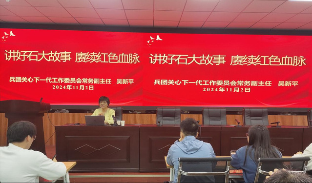 吴新平以“讲好石大故事,赓续红色血脉”为题,从历史的角度,深情讲述了石河子大学校园里屹立的雕塑、不同时期珍藏的老照片以及新闻媒体中的校友风采背后的动人故事。以此激励广大青年学子要牢记兵团精神,勇于实践创新,敢于担当作为,积极投身于新时代国家和地区的现代化建设中,为实现中华民族伟大复兴的中国梦贡献智慧和力量。