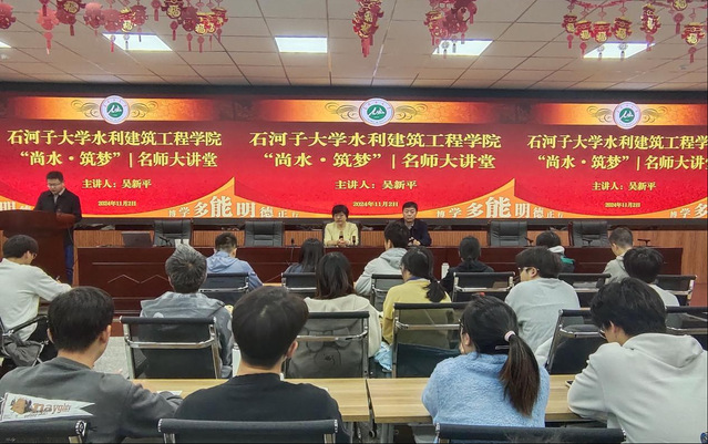11月2日,看球通 2024年第三期“尚水·筑梦”名师大讲堂在看球通 401会议室如期举行,本期嘉宾邀请到兵团关心下一代工作委员会常务副主任吴新平主讲,看球通 党委书记汤骅、党委副书记娄哲、全体辅导员、入党积极分子、学生骨干等150余人现场聆听讲座。讲座由娄哲主持。