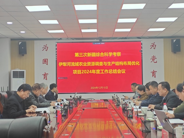 12月15日,由看球通-看球通体育-看球通直播 党委书记王振华主持的第三次新疆科学考察“伊犁河流域农业资源调查与生产结构布局优化”项目2024年度工作总结会议在石河子大学举行。新疆农垦科看球通 尹飞虎院士、中国科看球通 新疆生态与地理研究所田长彦研究员、石河子大学吕新教授、中国科看球通 地理科学与资源研究所吴朝阳研究员、伊犁师范大学焦子伟教授、新疆农业科看球通 马艳明研究员、西北农林科技大学陈宏教授等7位专家参加会议。科技部国家科技基础条件平台中心高孟旭,中国水利水电科学研究院科研处处长刘盈裴,石河子大学党委常委、副校长李剑出席会议。项目及课题负责人、研究骨干共45人以线上线下相结合的方式参加会议。