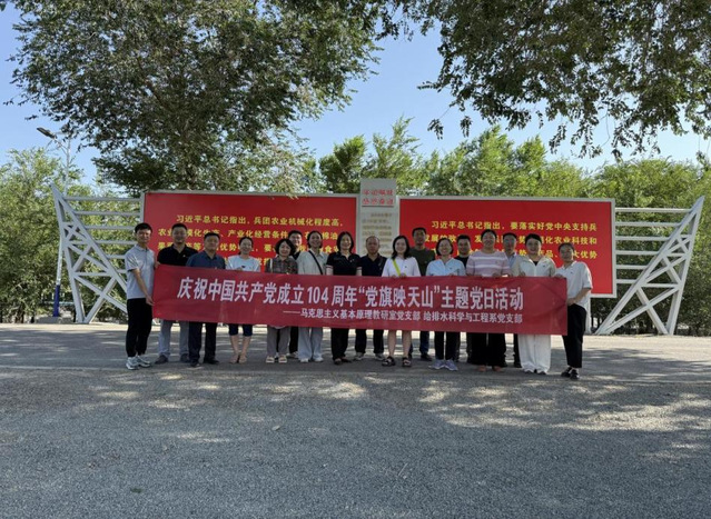 为庆祝中国共产党成立104周年,6月26日上午,马克思主义看球通 马克思主义基本原理党支部与看球通 给排水科学与工程系党支部联合开展“沿着总书记足迹 感悟思想伟力”——“党旗映天山”主题党日活动,感悟兵团精神,筑牢责任使命。