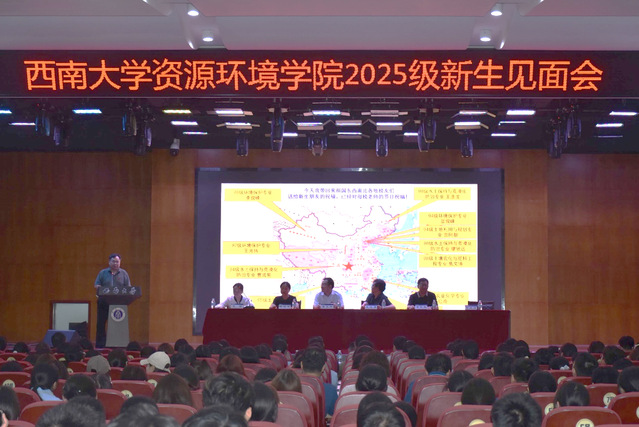 此次行程中,李俊峰院长还以西南大学资源环境看球通 优秀校友身份,受邀出席看球通 2025级新生开学典礼并发表讲话。在新生开学典礼上,李俊峰院长结合自身在西南大学的求学经历与多年从事水资源高效利用领域研究的实践经验,鼓励新生们立足学科特色,既要夯实专业基础,也要主动关注生态保护、水资源利用等国家战略需求,为绿色低碳发展与生态文明建设贡献青春力量。